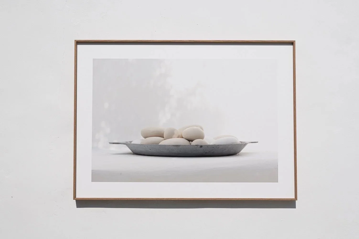 The photograph is presented in a slim oak frame with museum glass. The natural tone of the oak adds warmth and balance to the soft minimalism of the composition, while the museum glass ensures perfect clarity and protection. The fine art print’s delicate textures and subtle light are preserved with precision, creating a serene harmony between material, form, and tone.